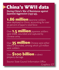 "Chinese forces killed, wounded and captured over 1.5 million Japanese troops in the war," Wang said.