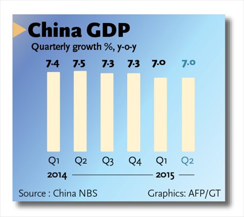 GDP growth stayed steady at 7 percent in the second quarter from a year earlier, unchanged from the first quarter, according to data from the National Bureau of Statistics (NBS). That surpassed forecasts of around 6.9 percent.