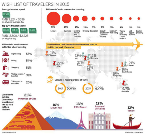 The survey, in its fourth year, interviewed more than 3,000 Chinese outbound travelers and 1,500 hotel operators worldwide. It considered the younger generation as those aged 18 to 35, also known as the millennials.