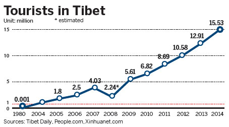 To cater to the growing trend, the local government has improved the transportation infrastructure and the services provided to self-drive travelers. For example, 3.08 billion yuan has been invested in the construction of the Lhasa-Nyingchi highway. The 409-kilometer road will be the highest freeway in the world when the work is completed in 2017, and the journey time between the two cities will be cut from eight hours to four.