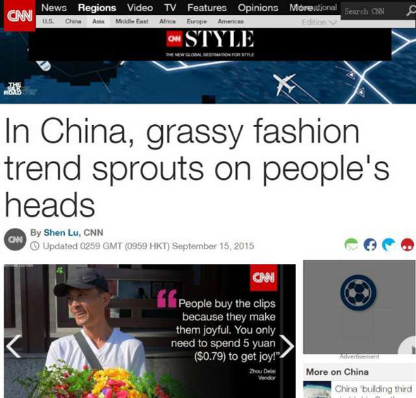 CNN has noticed that grassy fashion trend has sprouted on people's heads in China.