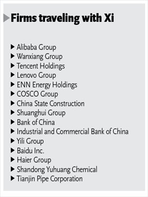 The CEOs of 15 top Chinese companies are traveling with Xi to the U.S.. They will meet with 15 executives of top U.S. companies in Seattle on Wednesday, according to the Chicago-based Paulson Institute.