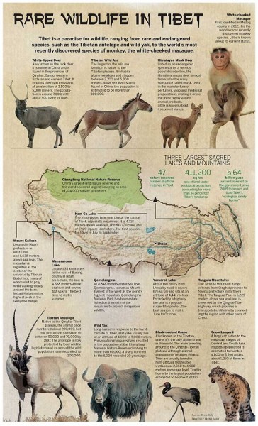 Local government has adhered to "green development" to preserve Tibet's environment in the past decades. The large and medium-sized wildlife populations of Tibet lead China, as the ecological environment is well protected.