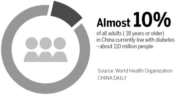 About 110 million adults in China live with diabetes, according to the World Health Organization.