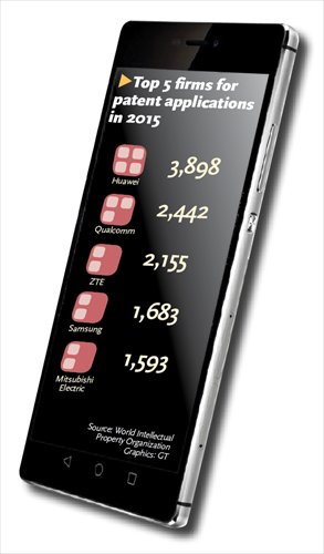 A report issued by the World Intellectual Property Organization in March said that Huawei applied for 3,898 patents in 2015, up 456 from the previous year.