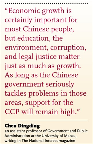 He wrote further: "The economy and society have developed and hundreds of millions of people prospered within this system. It is almost impossible to imagine - given Chinese culture and tradition - a different system. And, to judge by examples in Taiwan, elsewhere in Asia and, indeed, in the United States, it is highly doubtful that the accoutrements of a democratic pluralism that he cites would make any material difference."