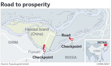 China and Russia are considering setting up land crossings connecting through Heixiazi Island, which is jointly owned by the two countries.