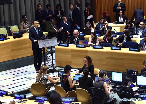 Chinese Premier Li Keqiang addresses the Summit for Refugees and Migrants of the on-going U.N. General Assembly in New York, the United States, Sept. 19, 2016. (Photo: Xinhua/Li Tao)