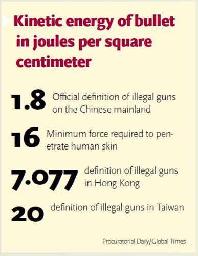 He cited an example where up to 90 percent of the gun-related cases processed by Daxing district court in Beijing from 2010 to 2012 fell into the aforementioned category.