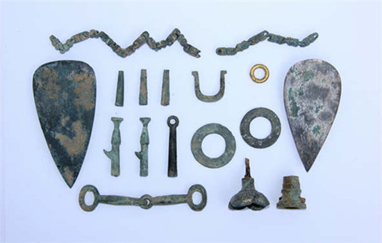 At the sites, archaeologists found 2,109 relics, mainly including jade articles, and bronze chariots and horses, which were often used for sacrificial offerings in ancient times.