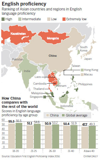 He compared the situation in China with Sweden, which has consistently placed highly in Education First's annual rankings. Although the official language of Sweden is Swedish, many residents can also speak English fluently, McCormick said.