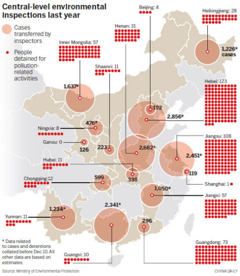 Ma Yong, an environmental law researcher at the Supreme People's Court legal center, said the administrative punishments levied have not been strong enough to curb the activities of some polluters. However, the work of the central-level inspectors had helped the local government to impose tougher controls to rein in polluters. The measures have brought the problem under control in some regions.