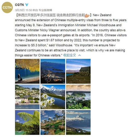 A lengthy post with nine pictures, published by CGTN on Weibo on March 29, 2017. /Weibo Screenshot
