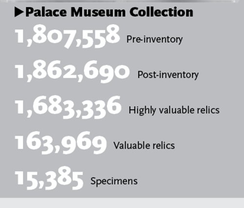 The collection of most museums can be seen as a pyramid, with the most precious items taking up a smaller space at the tip of the pyramid. The Palace Museum's collection, however, is an inverted pyramid, Shan explained, with precious relics making up a majority of the collection.