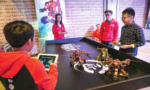 Enthusiasts try their hand at robot combat. (Photos: Li Hao/GT)