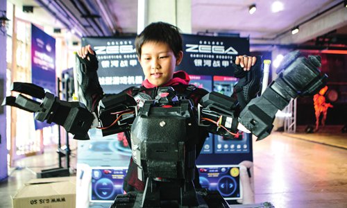 A boy imitates a robot. (Photo: Li Hao/GT)