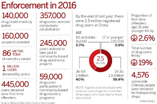 The commission said drug trafficking is highly orchestrated by drug lords, and many gangs have formed loose coalitions that allow them to operate cross-border networks. Last year, more than 5,000 drug rings were busted and around 1,100 leading members were arrested.