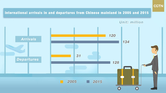 While the number of outbound departures from the Chinese mainland swelled up 312.9 percent from 2005 to 2015, the inbound tourists only increased 11.2 percent from 2005 to 2015, far lower than the average 81.3 percent in the Asian-Pacific region and also less than the 38.9 percent for developed countries and 57.2 percent for emerging economies.