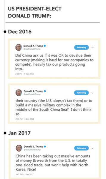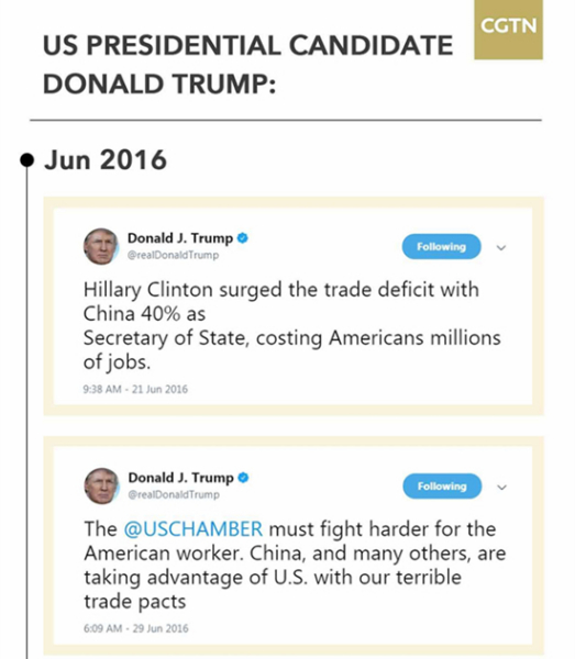 Below is a compilation of tweets by Trump about trade with China: