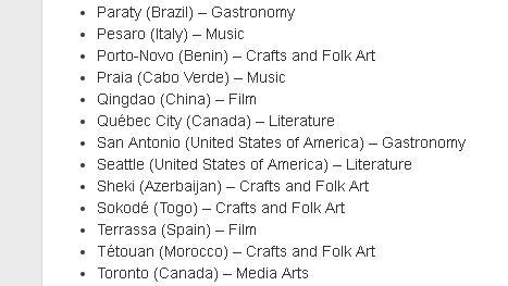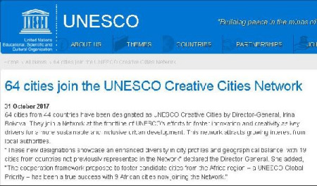 The Paris-based UN body said in a statement that "Within the framework of the implementation of the United Nations 2030 Agenda for Sustainable Development and the New Urban Agenda, the Network provides a platform for cities to demonstrate culture's role as an enabler for building sustainable cities."