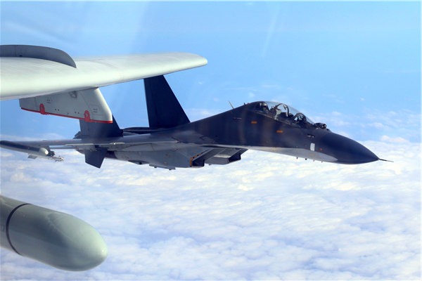 PLA Air Force aircraft conduct a patrol exercise on Monday near Taiwan. The military says such drills are strategically important. (China Daily)