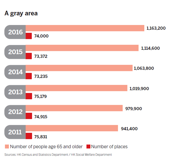 But community care services only received funding of about HK$1 billion ($127 million) in the financial year 2014-15. That's less than one-third the HK$3.9 billion spent on residential care services, according to a survey conducted by the Legislative Council and published in December 2015.