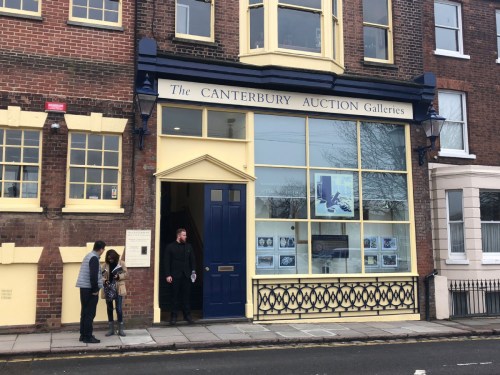 People stand outside Canterbury Auction Galleries on Wednesday after the sale there of a bronze water vessel, known as the Tiger Ying. (Photo/China Daily)