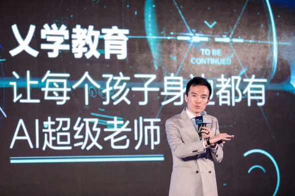 Li Haoyang, founder of Yixue Education, a Chinese education company focused on adaptive learning, delivers a speech on AI education in Beijing on April 11. (Photo provided to chinadaily.com.cn)