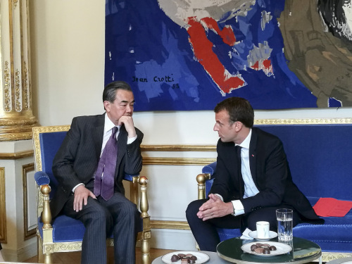 China will work with France to advance multilateralism, champion the international system and the norms of international relations, and jointly send signals on securing world peace and stability, Wang told Macron.