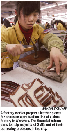 "The decrease in international orders and an increase in labor and material costs of about 30 percent created enough pressure on the SMEs, which find themselves urgently in need of help from the financial reforms as soon as possible," said Zheng Chen'ai, the chairman of Wenzhou Chamber of Clothing Commerce.