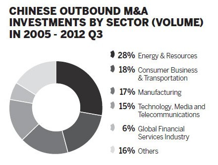 South America and Asia were listed as the most likely destinations for outbound manufacturing acquisitions, while South America is likely to witness the majority of Chinese outbound energy and resources acquisitions. Technology, media and telecommunications acquisitions are likely to continue to target North American assets over 2013 despite regulatory obstacles.