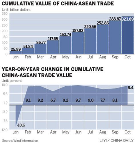 By 2015, bilateral trade is set to reach $500 billion. According to the council, Chinese enterprises had invested $18.5 billion in ASEAN countries by the end of October of this year.