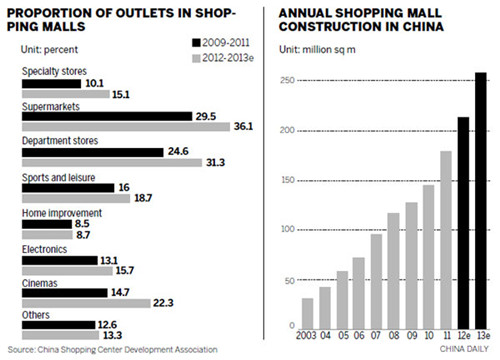 Last year, 15 million square meters of floor space for at least 1,500 malls were under construction in China.