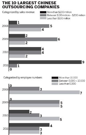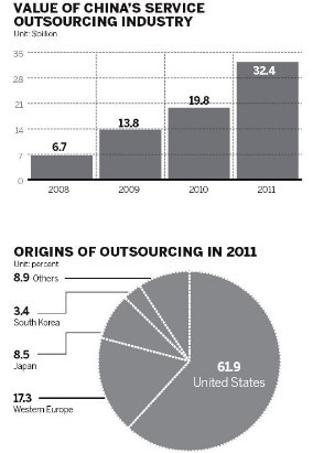 Using the potential of its huge domestic market, China has become the world's second-largest outsourcing services provider after India, accounting for 28.7 percent of the global market.