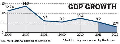 Zhang Xiaoqiang, vice-minister of the National Development and Reform Commission, China's major economic policymaking body, told a forum that economic growth may have hit 7.7 percent in 2012, exceeding the government's full-year target of 7.5 percent.