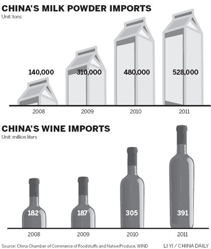 Guo Dongdong, vice-president of the food and beverage department of Yihaodian.com, the e-commerce unit of Walmart in China, said the company's sales of imported food increased fivefold from 2011 to 2012.