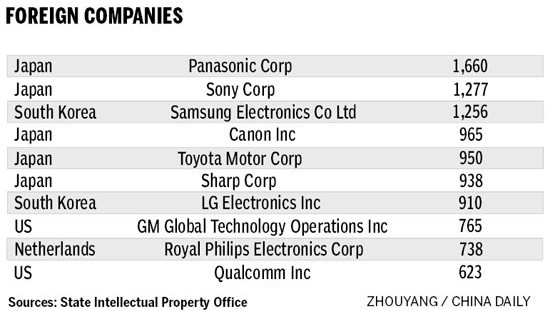"Companies are the country's mainstay in innovation" with nearly 55 percent of domestic invention patents granted in 2012, he added.