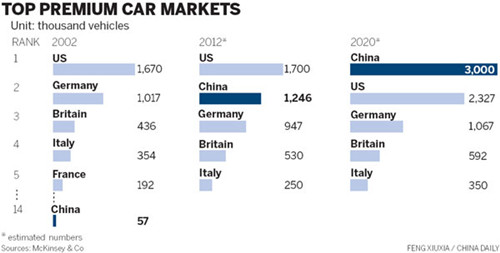 Sales of premium cars in China reached 1.25 million vehicles in 2012, making it the world's second-biggest market after the US.