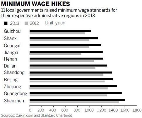 Average expectations are for a 9.2 percent increase for 2013, versus 7.6 percent in 2012. With official consumer price index inflation expected to rise to 4 percent in 2013, according to a Standard Chartered forecast, from 2.6 percent last year, real wages should rise at about the same pace. Of 302 respondents, 180 (60 percent) said they have already raised wages this year, by an average of 7.9 percent.