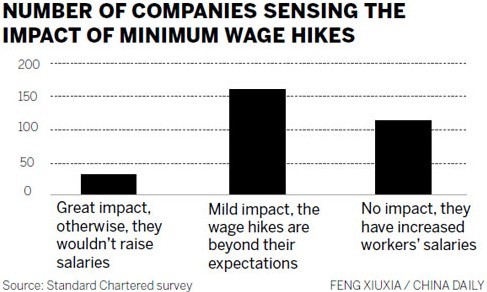 However, just over half said that the hikes have forced them to raise wages more than they had planned. The bank's survey had the same results in 2012, suggesting that minimum wage hikes have had a significant cumulative effect, particularly on the least-skilled part of the workforce.