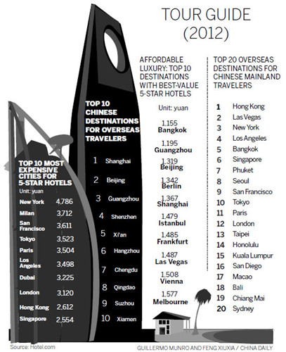 Overseas travelers still prefer Beijing, Shanghai and Guangzhou as their first destinations when they visit China, said Chuang. Hotel owners in destinations like Lijiang city in Yunnan province have benefited due to strong demand from domestic and overseas travelers, she said.