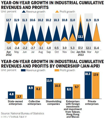 "The net income growth of industrial companies in April was stable," said Yu Jianxun, an economist with the NBS.