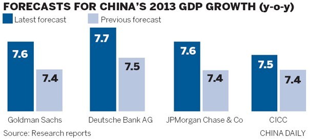 For example, China International Capital Corp lifted its full-year forecast to 7.5 percent from 7.4 percent previously.