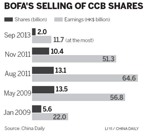 Bank of America told CCB that it has been downsizing the Chinese bank's H-shares to pump up its assets because of stricter requirements on capital quality by US banking regulators, said the spokesperson.