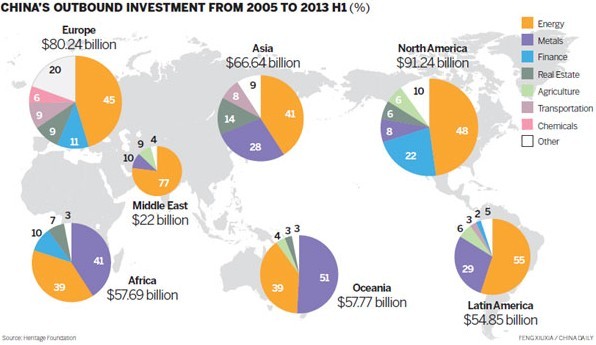 E&Y's report has found that China's outbound investment is diversifying beyond energy. For the first half of the year, the energy and metals sectors accounted accounted for 64 percent of such investment, down from 78 percent in 2009.