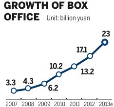 This year, Chinese films accounted for 58 percent of box-office revenue, compared with 48.5 percent in 2012. [Photo/China Daily]