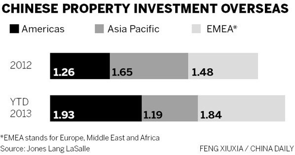 "Europe was an early focus for the Chinese investors with a number of deals in the United Kingdom over the last three years. This has continued in 2013, but the focus has widened, and we have seen deals occur right across continental Europe with increased investor interest in southern and central Europe," said David Green-Morgan, research director of global capital markets at Jones Lang LaSalle.