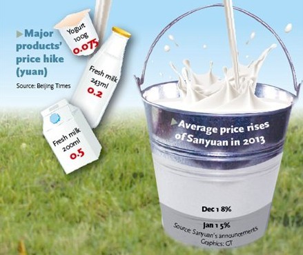 The price of raw milk has gone up due to limited supplies, and the fundamental reason is that small and medium-sized dairy farmers have quickly retreated from the business in recent years, Song Liang, an independent dairy industry analyst, told the Global Times Thursday.