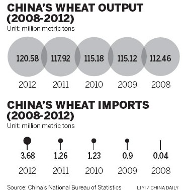 Its wheat imports nearly tripled to 3.68 million tons in 2012 compared with the previous year, according to the General Administration of Customs.
