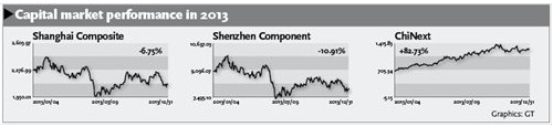Of the 10 mainland-listed stocks that saw the biggest gains in 2013, nine are listed on ChiNext.